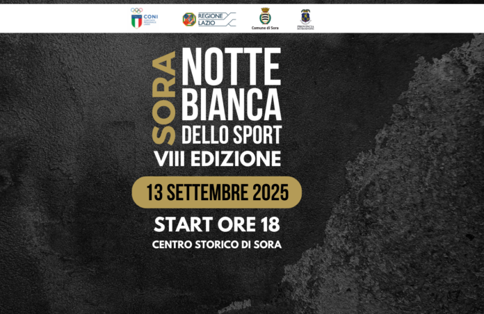 Tutto pronto per la Notte Bianca dello Sport 2025. Sora si prepara a vivere l’ultimo grande evento in programma per l’estate con un’iniziativa unica nel suo genere che ogni anno riesce a richiamare migliaia di visitatori. Appuntamento sabato 13 settembre, dalle ore 18.00, nel centro storico.