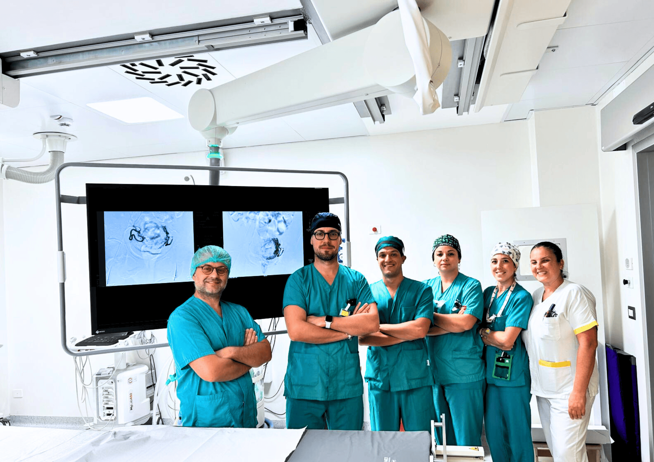 L’intervento è stato eseguito dal dr. Federico Romeo Fraioli, coadiuvato dal dr. Andrea Wlderk, coordinatore della Radiologia Interventistica, che oggi guida una delle équipe più giovani e dinamiche d’Italia, composta da professionisti con un’età media tra i 30 e i 40 anni.