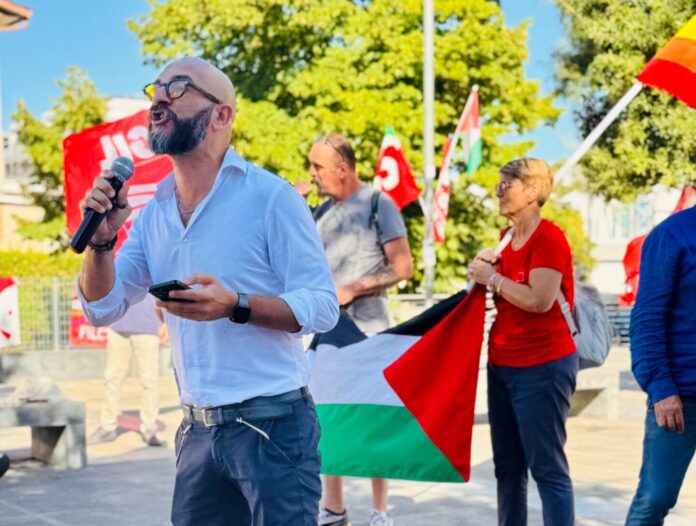 «Oggi siamo qui anche per sostenere la coraggiosa missione umanitaria che vede decine di volontari e volontarie attivisti di 44 paesi del mondo che si sono organizzati con delle imbarcazioni private per portare aiuti umanitari in Palestina. Chiediamo al governo Meloni di attivare tutte le procedure possibili per mettere in sicurezza i volontari sulle imbarcazioni, così come chiediamo a tutti di fare lo sforzo di compiere azioni concrete».