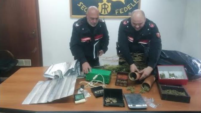 Al termine dei vari accertamenti i Carabinieri hanno bussato alla sua porta per una perquisizione domiciliare. Durante le operazioni i militari hanno trovato e sequestrato tre piante di cannabis indica, già con infiorescenza, situate nella parte retrostante dell’abitazione, oltre a 200 grammi di marijuana, già pronti per essere immessi sul mercato, occultati all’interno di una scatola.