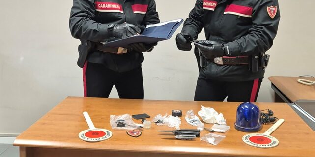 L’atteggiamento dell’uomo non è sfuggito all’occhio vigile dei carabinieri che lo hanno subito bloccato impedendogli di allontanarsi. Le indagini non si sono fermate lì: presso l’abitazione del 40enne i militari, a seguito della successiva perquisizione domiciliare, hanno trovato un lampeggiante di colore blu, del tipo in uso alle Forze di Polizia, ritagli in cellophane e materiale utile per il confezionamento delle dosi di stupefacente da immettere sul mercato locale.