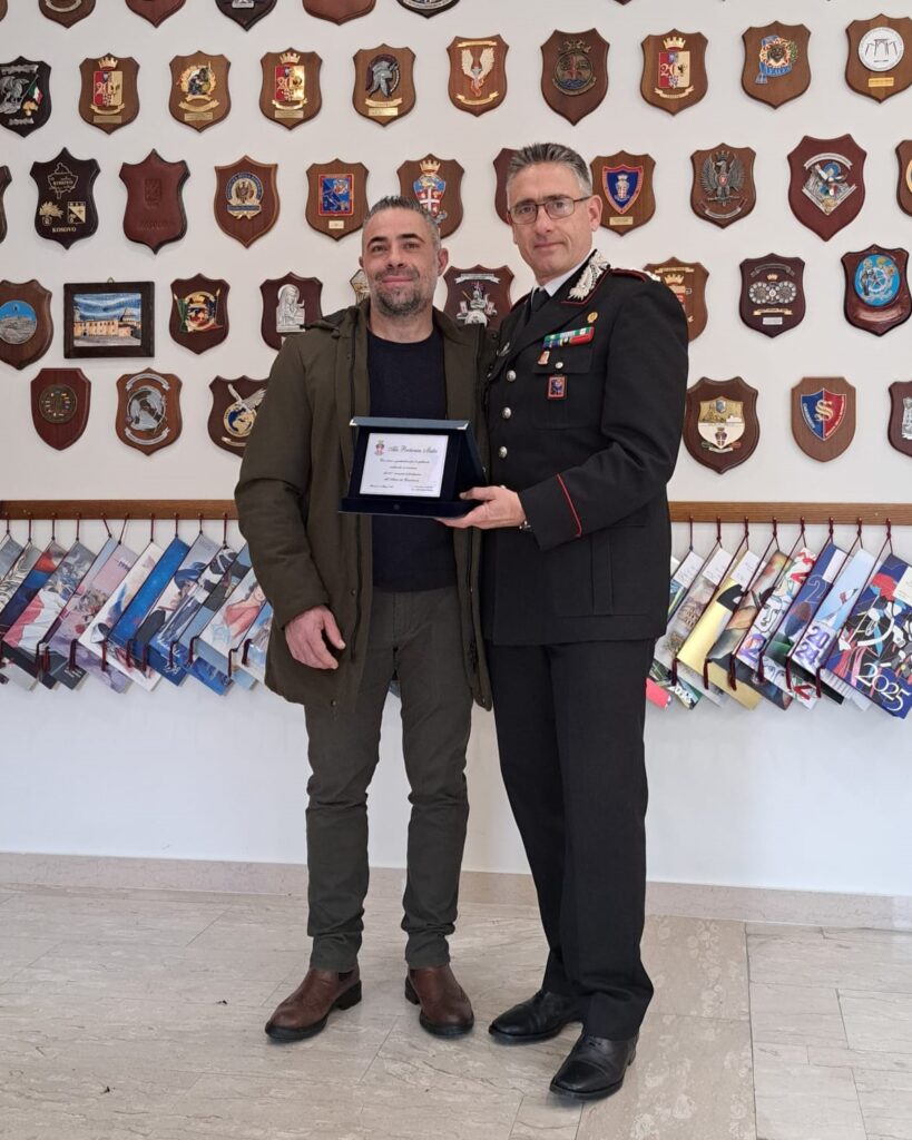 Questa mattina, presso il Comando Provinciale dei Carabinieri di Frosinone, il Colonnello Gabriele Mattioli ha consegnato una targa ricordo all’Azienda “Pirotecnica Mattei” di Castelliri, operante nel settore della fabbricazione e vendita di fuochi d’artificio.