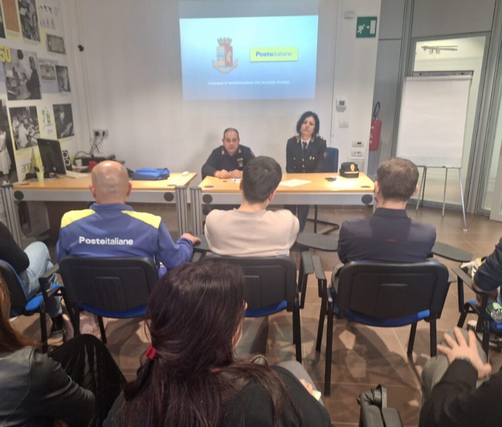 Ha fatto tappa stamattina a Frosinone, nella filiale provinciale di Poste Italiane in Piazza della Libertà, il corso “Guida sicura”. Al seminario, tenuto da rappresentanti della Polizia Stradale di Frosinone, hanno partecipato 20 dipendenti appartenenti a varie strutture aziendali delle Filiali di Frosinone e Latina, con particolare riguardo a coloro che svolgono le loro attività con veicoli aziendali.