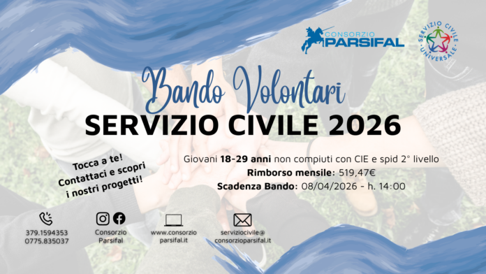 Il Consorzio Parsifal, consorzio di cooperative sociali presenti su tutto il territorio nazionale, rinnova per il 2026 la promozione del bando di Servizio Civile Universale, promosso dal Dipartimento per le Politiche Giovanili e il SCU della Presidenza del Consiglio dei Ministri.