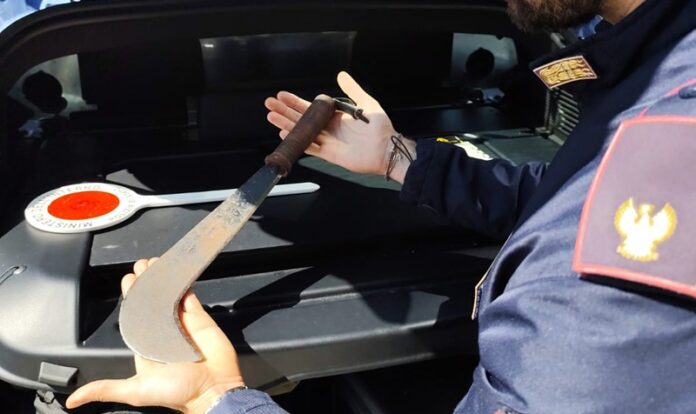 Nella prima circostanza, un cittadino nigeriano, di circa 25 anni, è stato sorpreso aggirarsi con una roncola di circa 40 cm in una zona periferica del capoluogo.