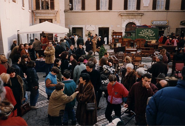 Ma i tanti amanti dell’antico e non del vecchio da scartare impazzivano alla ricerca di un francobollo, di un ‘baiocco’, di un libro, di un vinile o dei primi dischi ‘Net’. Inizialmente la novità, peculiarità verolana in un centro antico che non ha eguali, era persino spalmata, come dicevamo sopra, sulle due giornate del week end della quarta settimana del mese. Ci fu una sorta di convenzione con l’albergo di Miravalle e con il ristorante la Lega Ernica e persino con Pio Pasta all’uovo con il vicino Pub The Cat per preparare un menù di veri prodotti tipici, che con diecimila lire era appetito da tutti quale lauto pasto. Cari miei, bisogna farsi girare il cervelletto se si vuole riportare in centro gente per gli stessi commercianti, i quali, però, anche loro non devono aspettare i soli clienti amici della sera che si contano sulla punta delle dita per poi andare in letargo gli altri giorni piangendo e minacciando di riconsegnare le chiavi. A chi però non è dato sapere.