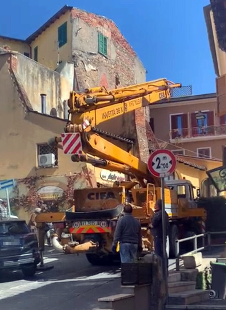 All’esterno è prevista la rimozione delle strutture portanti ormai obsolete. Nell’ottica del rifacimento della copertura, verrà operata la rimozione della superfetazione esistente all’ultimo livello e la ricucitura della maglia muraria perimetrale.