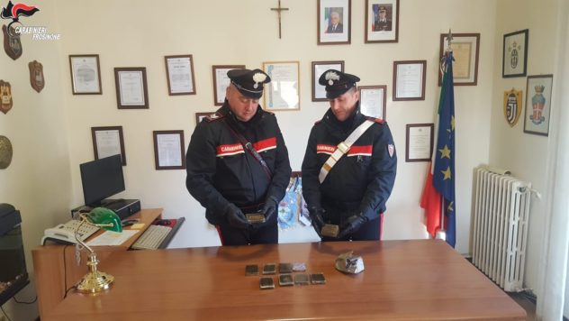 Arrivati sul posto, il ragazzo ha spontaneamente consegnato loro un panetto di hashish di 80 grammi che teneva nascosto in un fossato adiacente all’abitazione. Nonostante ciò i militari hanno effettuato anche la perquisizione personale del diciannovenne trovando un grande quantitativo di droga: altri sette panetti di hashish per un peso complessivo di 700 grammi circa nonché, all’interno dell’abitazione, di un bilancino di precisione sequestrato insieme alla droga. Per il diciannovenne sono scattate le manette e tutti e tre sono stati posti al regime degli arresti domiciliari.