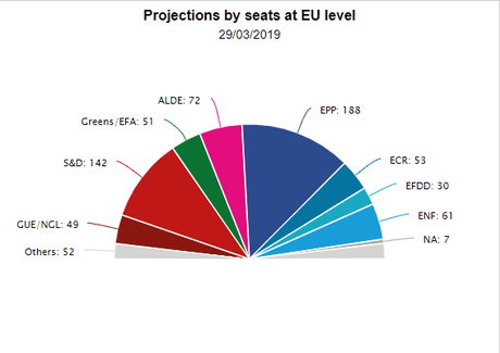 I dati si basano su una raccolta di sondaggi affidabili, condotti da istituti nazionali negli Stati membri e aggregati da Kantar Public. I partiti sono assegnati solo ai gruppi politici esistenti o, se sono già affiliati, al partito politico europeo associato. Tutti i nuovi partiti politici e movimenti che non hanno ancora dichiarato le loro intenzioni sono classificati come ‘altri’. Il prossimo Parlamento avrà meno deputati (705) del Parlamento uscente (751).