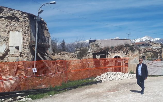 Il sindaco Alfieri a Onna tra macerie e ricostruzione