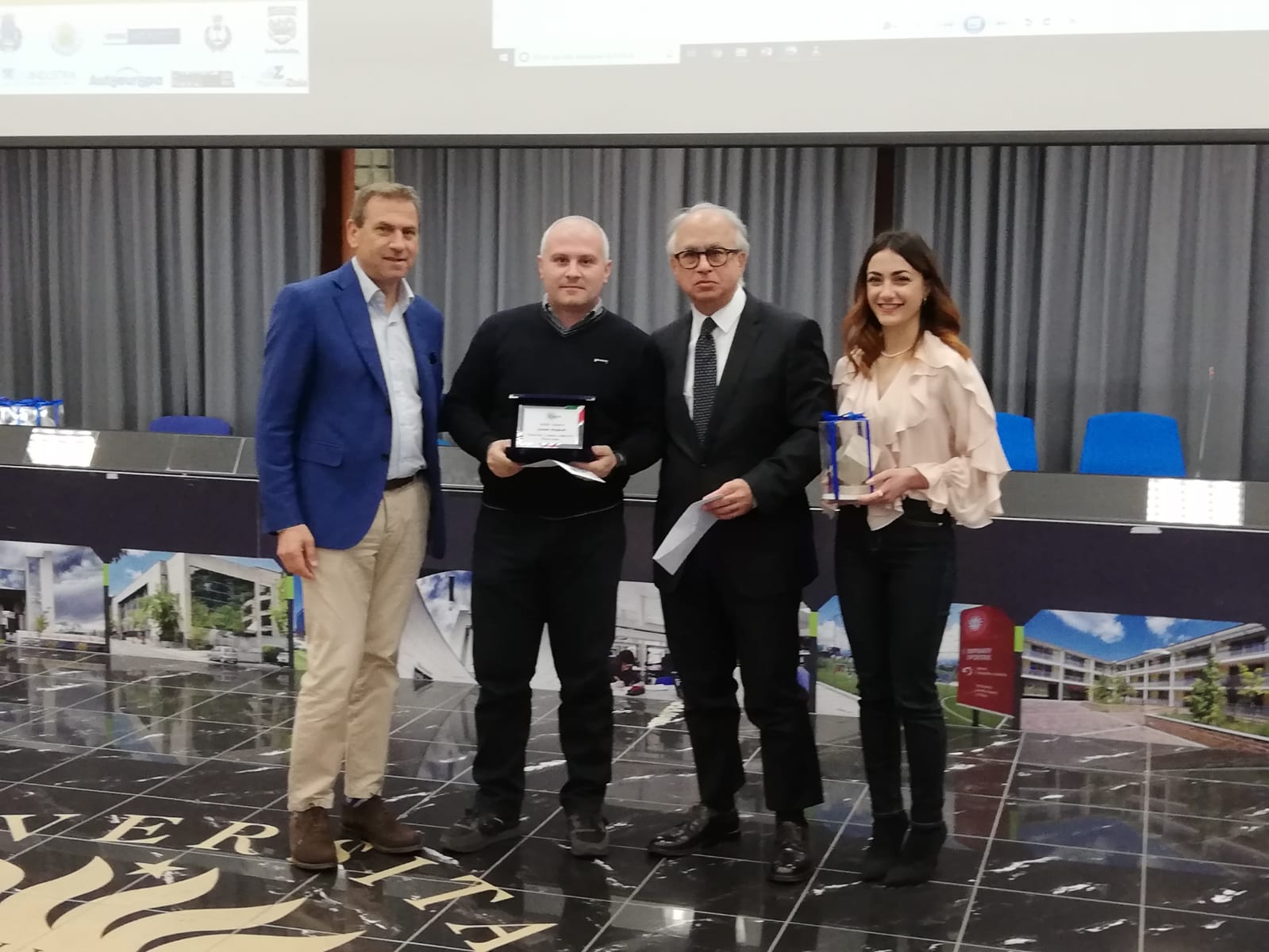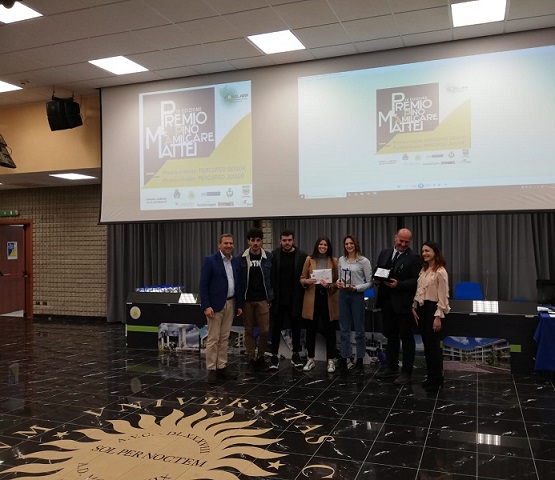 Premio al merito si è classificata al terzo posto Valentina Rega con la tesi “Sviluppo di un processo produttivo per la realizzazione di pannelli a partire da polveri di marmo”, al secondo posto Achille Gazzerro con la tesi “Industria 4.0: la nuova sfida della geometria additiva” e al primo posto Gianluca Pistore con la tesi “Dal cigno nero al buco nero: il ruolo delle grandi masse finanziarie nella deformazione del tempo”.