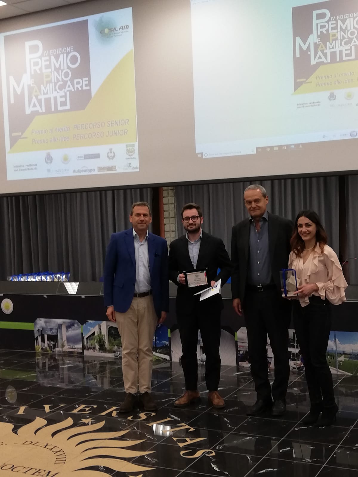 Sono stati proclamati i vincitori del Premio Pino e Amilcare Mattei. Questa mattina, nell’aula magna del campus Folcara si è svolta la cerimonia conclusiva della quarta edizione promossa dal Cosilam e realizzata grazie anche al contributo di: Università degli Studi di Cassino e del Lazio Meridionale, Unindustria Cassino, Comune di Coreno Ausonio, Comune di Castelforte, Banca di Credito Cooperativo dell’Agro Pontino, Cooperativa Cavatori Coreno, AutoEuropa, Ecoliri e Marmi Zola.