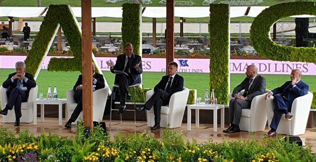 In rappresentanza del mondo armatoriale: il presidente dell’International Chamber of Shipping Emanuele Grimaldi, per Confitarma il presidente Mario Mattioli, le Authority portuali: per i porti laziali, Francesco Maria Di Majo, per i porti della Sicilia Orientale, Pasqualino Monti. Moderatore dell’incontro il giornalista Bruno Vespa. Nel pubblico anche il presidente di Confimprese, Guido D’Amico.