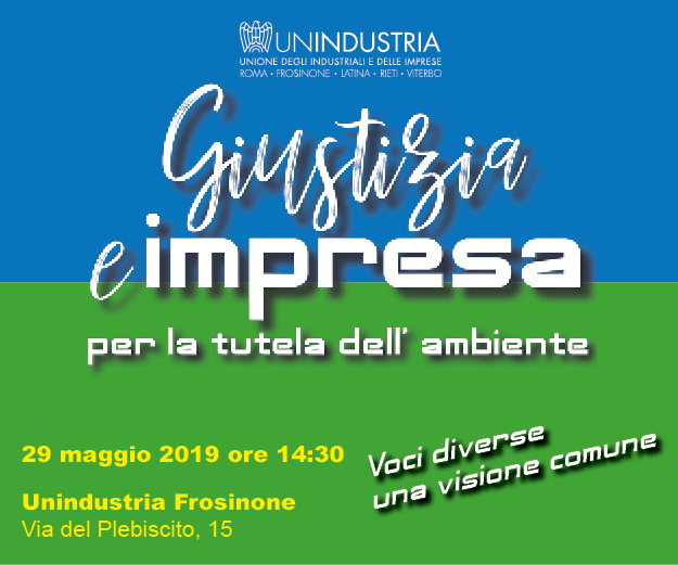 Giovanni Turriziani, Presidente di Unindustria Frosinone e Luisa Magnante, Presidente della Sezione Servizi Ambientali di Unindustria, terranno venerdì 24 maggio alle ore 11.30, presso la sede di Unindustria a Frosinone, in via del Plebiscito 15, la Conferenza stampa di presentazione del convegno “Giustizia e Impresa per la tutela dell’ambiente”.