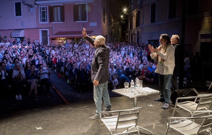 Gianfranco D’Angelo, Sergio Vastano e Tonino Scala, protagonisti della divertentissima pièce “Eravamo tre amici al bar”, sono stati infatti accolti da una piazza Valchera gremita. I “tre amici al bar” hanno coinvolto il pubblico in un viaggio esilarante tra aneddoti, ricordi, memorie e canzoni (eseguite dal vivo da Tonino Scala e Sergio Vastano), che hanno fatto rivivere al pubblico presente l’ultimo mezzo secolo della nostra storia, con tutti i vizi e le virtù di quelli che eravamo e che ancora oggi siamo. Ridendo, tra una gag e l’altra, anche di noi stessi.