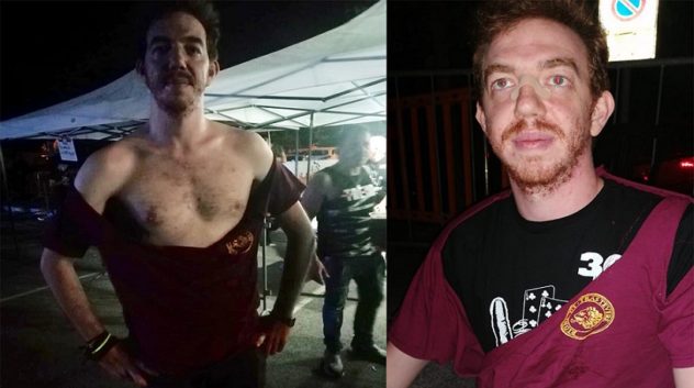 Lo hanno insultato, aggredito e picchiato, durante il concerto di beneficienza di sabato sera, a Frosinone, contro la leucemia. Lui è Francesco, un ricercatore di 33 anni, che è stato prima minacciato all’interno del bagno, poi inseguito e picchiato da un gruppo di aggressori, che gli hanno anche strappato la maglietta amaranto e gli hanno rotto gli occhiali.