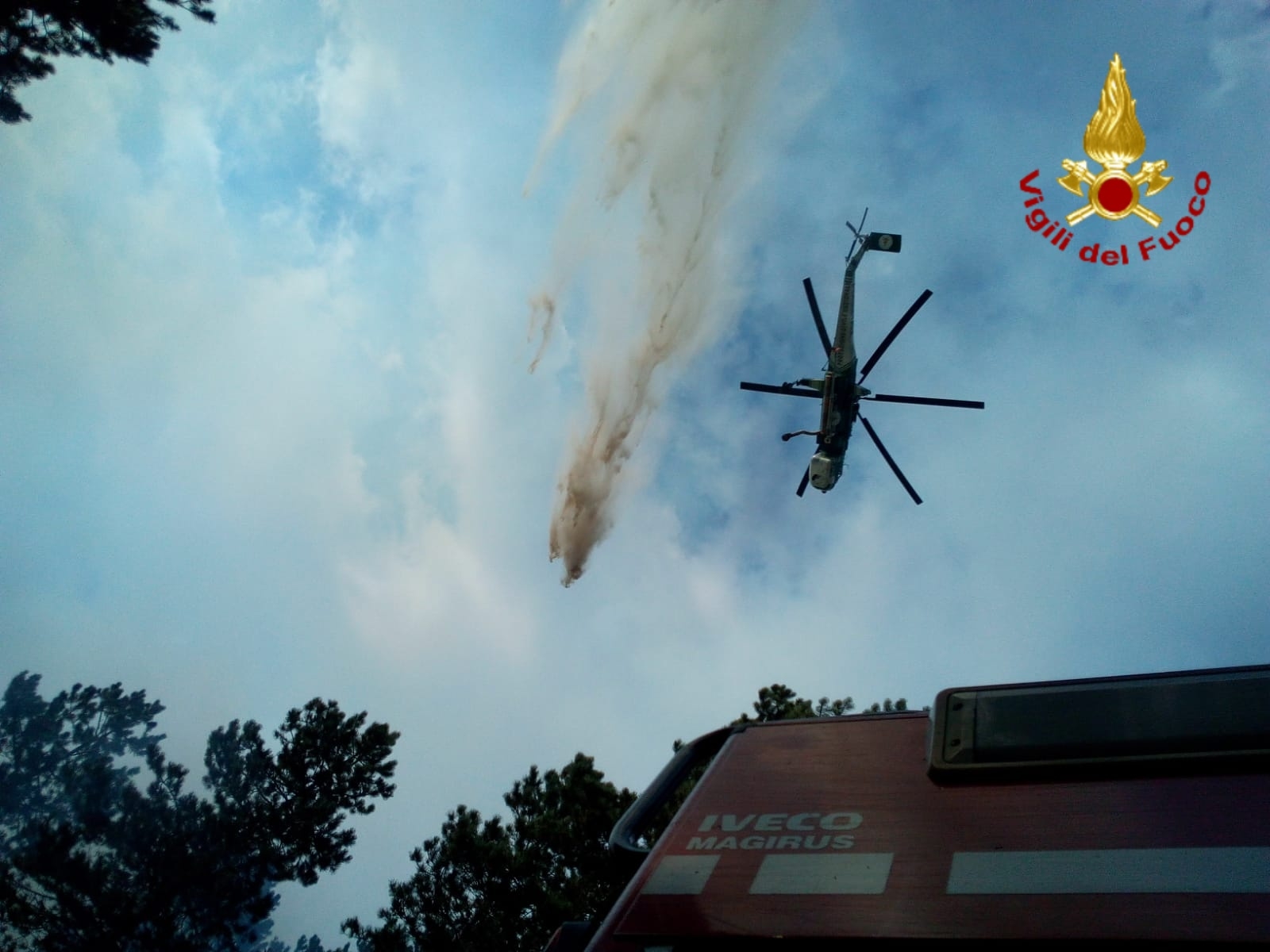 Al momento sono impiegati 15 vigili del fuoco con quattro mezzi e 18 volontari con 6 mezzi. Solo nella giornata di ieri sono stati  effettuati dai mezzi aerei 141 lanci.  Da questa mattina sono stati effettuati dagli elicotteri 44 lanci. Il versante est è stato bonificato mentre il versante ovest è in via di spegnimento, con il personale a terra impegnato nella bonifica.  Attualmente l’incendio è sotto controllo.