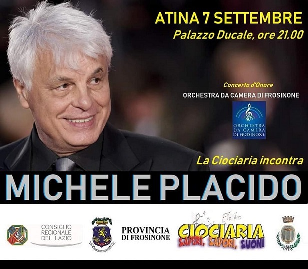 Ad iniziare dalla giornata di sabato, ad Atina, con l’attesissimo “La Ciociaria incontra”, che ospiterà Michele Placido. L’attore non è nuovo a visite in Ciociaria, con recitals e spettacoli, insieme ad altri tra i più grandi del panorama italiano – ad iniziare da Giancarlo Giannini – è divenuto un autentico testimonial dei progetti “Ciociaria: Saperi, Sapori e Suoni” e “Ciociaria d’Estate”. I due felicissimi progetti ideati dal vicepresidente della Provincia Luigi Vacana. Il nome di Placido è legato a doppio filo a quello della polizia, il successo per l’attore è infatti arrivato interpretando in tv il mitico commissario di Polizia Corrado Cattani, nella storica serie “La Piovra”, il personaggio in brevissimo tempo entrò nel cuore di ogni italiano: forte, coraggioso e pronto a tutto pur di sconfiggere le mafie, il commissario Cattani divenne un vero e proprio simbolo dell’Italia di quegli anni. A conclusione della serata, nell’incantevole Palazzo Ducale di Atina, un concerto d’Onore dell’Orchestra da Camera di Frosinone.