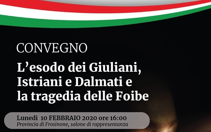 Non disperdere la memoria della tragedia mondiale delle foibe e dell’esodo dalle loro terre degli istriani, fiumani e dalmati: con questo obiettivo, lunedì 10 febbraio, alle ore 16.00,  il gruppo consiliare provinciale di Fratelli d’Italia organizza nel palazzo dell’Amministrazione provinciale di Frosinone un convegno per non dimenticare.