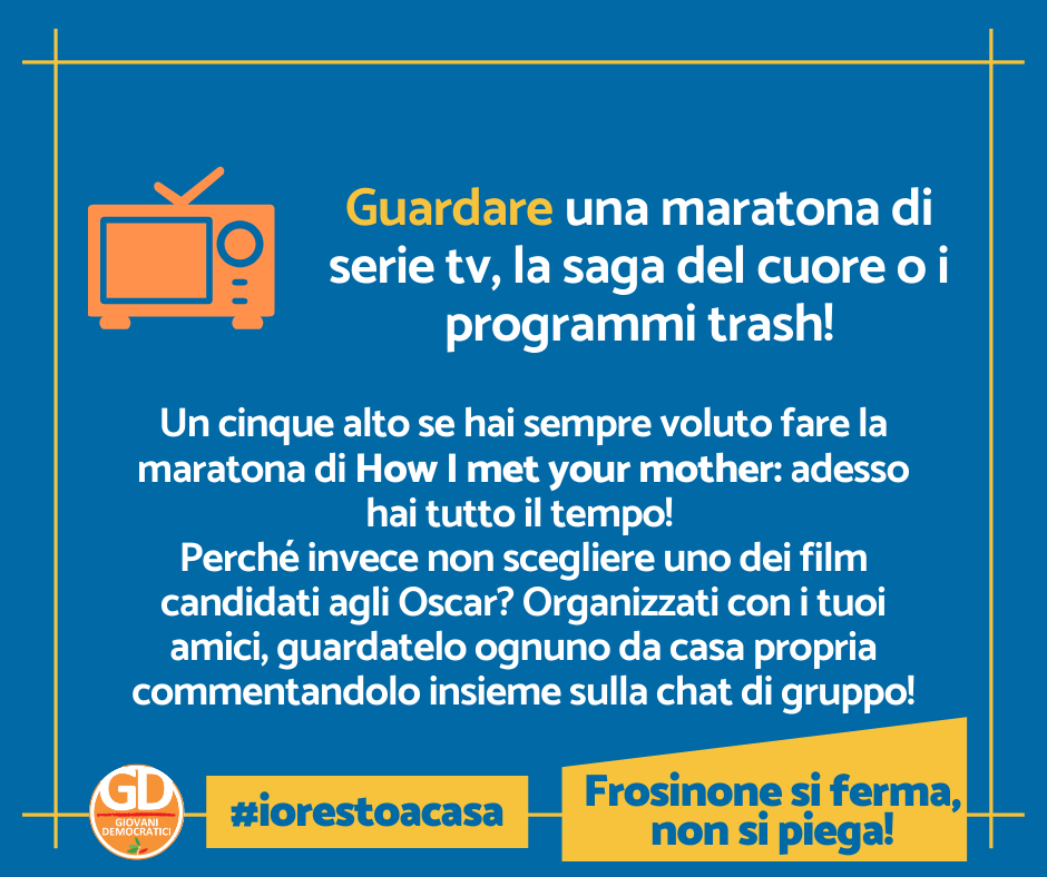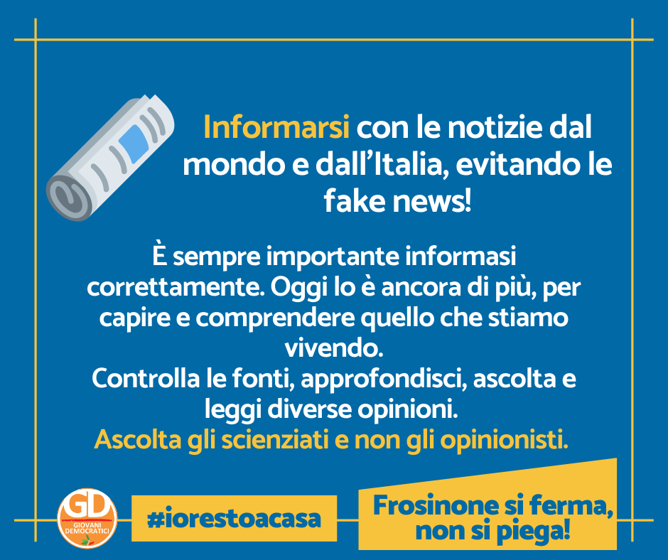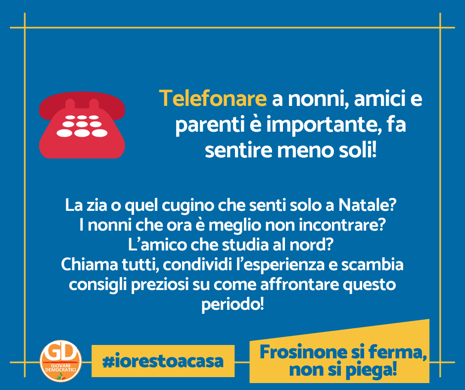 A seguito degli appelli del Pd nazionale e dell’Organizzazione regionale dei giovani dem anche le ragazze e i ragazzi di Frosinone hanno deciso di contribuire all’iniziativa #iorestoacasa con una particolare campagna social, indirizzata al territorio della provincia dal nome ‘Frosinone si ferma, non si piega’”. Così i Giovani Democratici di Frosinone.