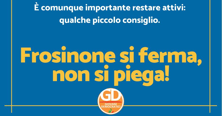 “La campagna ‘Frosinone si ferma, non si piega’ è l’ennesimo esempio positivo delle ragazze e dei ragazzi che comprendono la difficoltà di questo momento e decidono di fare la loro parte”. Evidenzia il segretario regionale dei Gd e candidato alla Segreteria Provinciale del Pd di Frosinone, Luca Fantini.