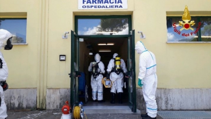 Coronavirus, igienizzato dai Vigili del fuoco l’ospedale di Alatri