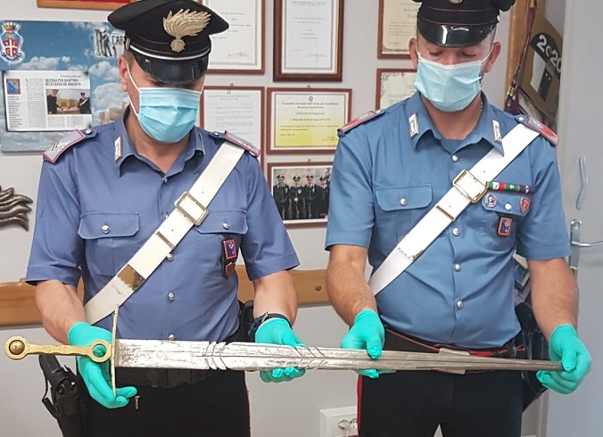 A seguito di alcune segnalazioni, infatti, per maltrattamenti di animali, i militari hanno perquisito la sua abitazione e trovato una grossa sciabola, di dimensione di circa 1 metro, il cui possesso non era stato mai denunciato. L’arma è stata sequestrata.
