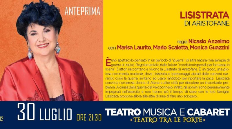 Giovedì 30 luglio sarà la volta dell’anteprima della “Lisistrata” con Marisa Laurito, Mario Scaletta, Monica Guazzini; regia Nicasio Anzelmo, dalla celebre commedia di Aristofane.