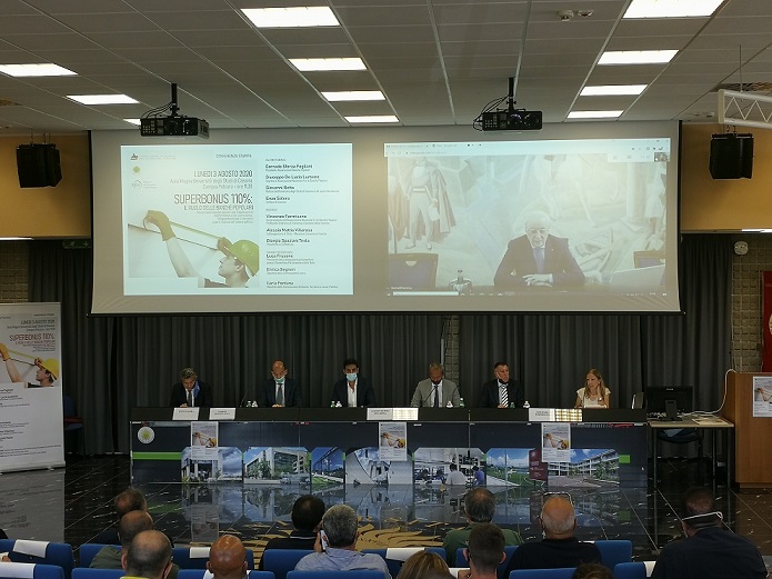 A fare gli onori di casa il Rettore dell’Università degli Studi di Cassino Prof. Giovanni Betta: dopo tanto tempo l’Aula Magna è tornata a riempirsi e, pur con tutte le cautele ancora necessarie per fronteggiare l’emergenza Covid, è un segnale di ripartenza. Betta ha anche sottolineato quanto sia importante essere tempestivi di fronte ad un tema così attuale e importante perché, con questo provvedimento del governo, vincono tutti: vince il singolo cittadino, che può ristrutturare un proprio bene, vincono le imprese, vince il territorio che vede ripartire un comparto importante, vincono le banche, vince il Paese.