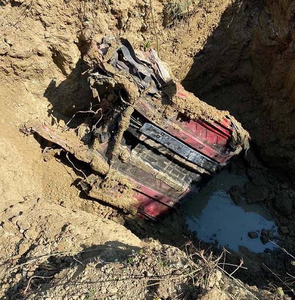 Dissotterrata la carcassa di un’auto rubata, era stata ‘ripulita’ e rivenduta