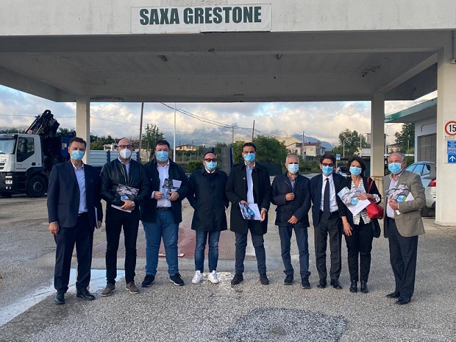 Nei giorni scorsi una delegazione del Distretto del Marmo composta, tra gli altri, dal sindaco di Coreno Ausonio Simone Costanzo, dal sindaco di Ausonia Benedetto Cardillo, dal sindaco di Castelnuovo Parano Oreste De Bellis, dal sindaco di Esperia Giuseppe Villani e dal presidente della Cooperativa Cavatori Coreno Graziella Mattei è stata accompagnata dal Presidente del Cosilam Marco Delle Cese alla Saxa Grestone di Roccasecca.