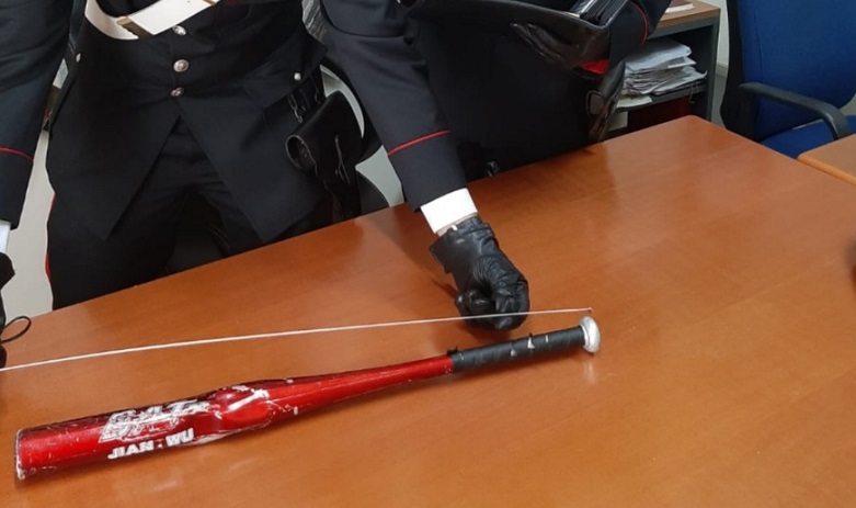 La mazza da baseball sequestrata dai carabinieri