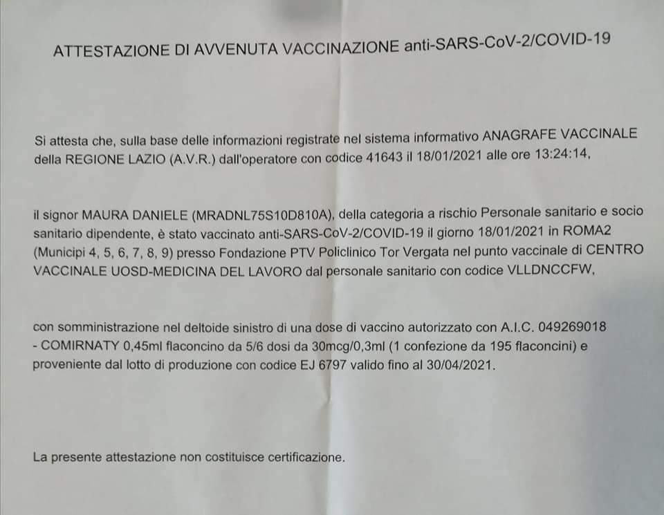 Anche Daniele Maura, presidente del coniglio provinciale di Frosinone ed esponente di FdI, si è fatto vaccinare contro il Covid-19. L’annuncio sulla sua pagina facebook.