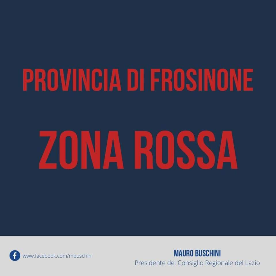 All’una di notte di lunedì scatta la zona rossa per la provincia di Frosinone. Durerà per 14 giorni. La decisione è scaturita a causa dell’aumento dei contagi.