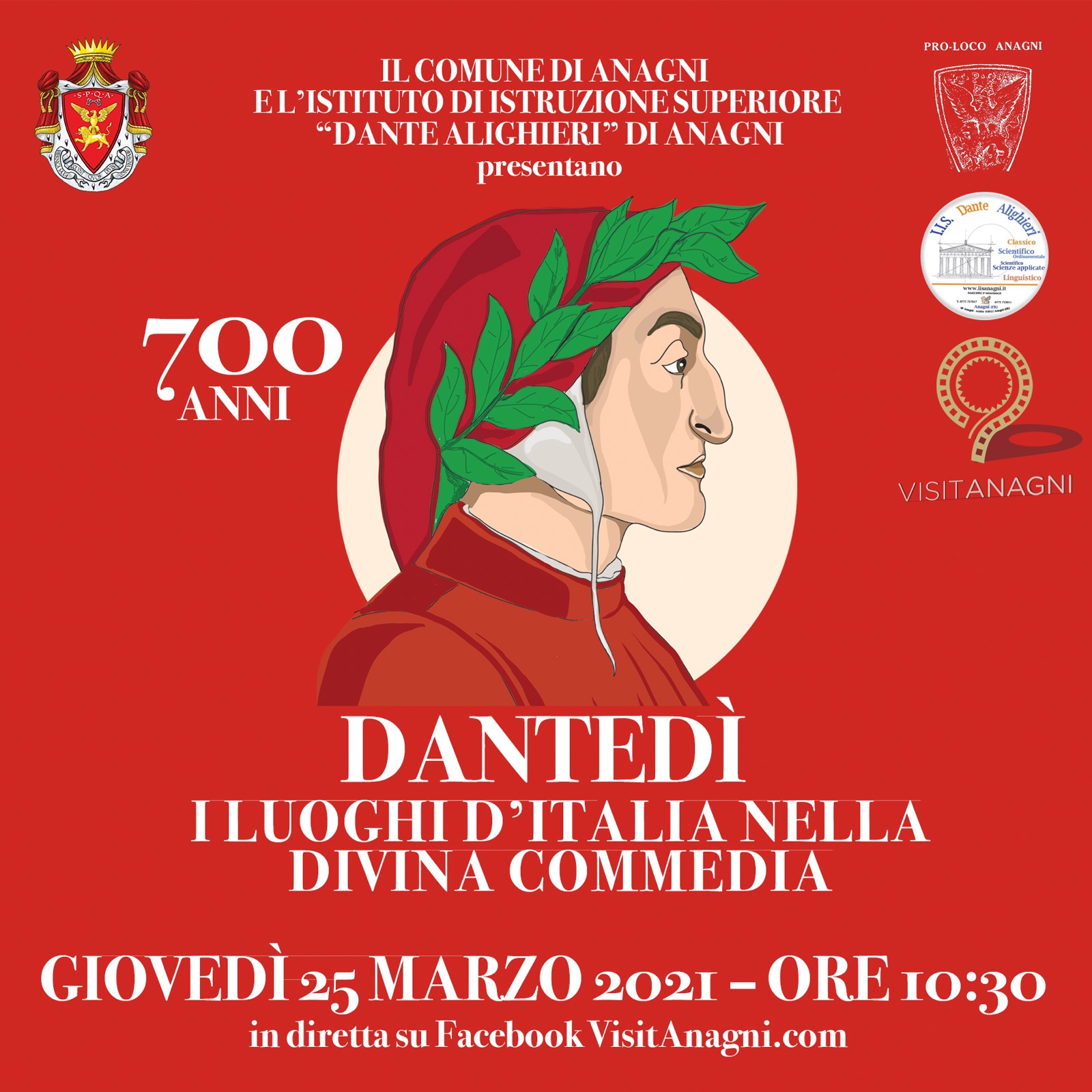 Il preside Prof. Adriano Gioè ha aggiunto: L’evento Dantedì-I luoghi d’Italia nella ‘Divina Commedia’ del 25 marzo intende costituire per il 2021 il punto di avvio e di riferimento delle varie iniziative culturali che ruoteranno attorno alla figura di Dante Alighieri nel corso dell’anno, iniziative organizzate dal Comune di Anagni e dal Liceo “Dante Alighieri” di Anagni per celebrare l’opera letteraria del Sommo Poeta a settecento anni dalla sua morte”.