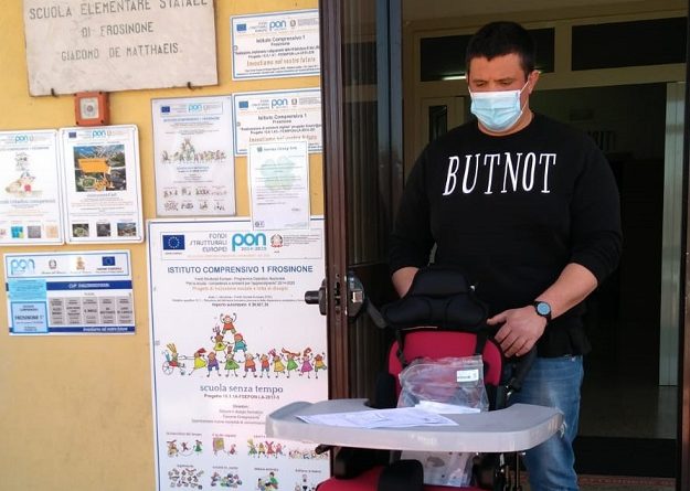 Nei giorni scorsi, alla presenza della dirigente, prof.ssa Edina Furlan, è stata consegnata presso la scuola primaria “Osteria De Matthaeis ” dell’IC Frosinone 1°, una sedia a rotelle molto particolare, studiata appositamente per le specifiche esigenze di un alunno con grave disabilità, frequentante il plesso.