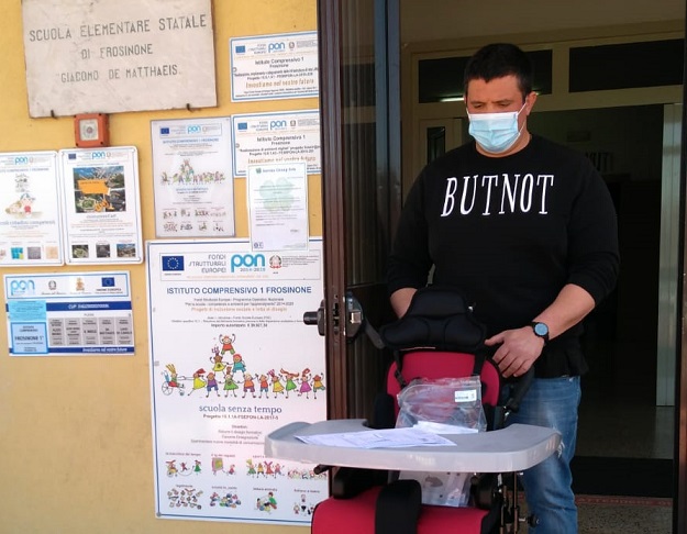 Nei giorni scorsi, alla presenza della dirigente, prof.ssa Edina Furlan, è stata consegnata presso la scuola primaria “Osteria De Matthaeis ” dell’IC Frosinone 1°, una sedia a rotelle molto particolare, studiata appositamente per le specifiche esigenze di un alunno con grave disabilità, frequentante il plesso.