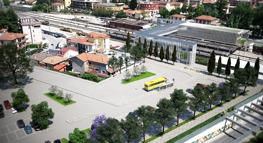 Il Comune ha indicato, quale intervento cardine del progetto per la Riqualificazione Urbana e la Sicurezza delle Periferie (per il quale è risultato assegnatario di un finanziamento di complessivi 17.995.818,81 euro, a valere sulle risorse del Fondo per lo sviluppo e la coesione) quello inerente alla riqualificazione di piazzale Kambo. A ciò si aggiunga il concomitante investimento di Rete Ferroviaria Italiana, per la riqualificazione degli edifici di proprietà e la realizzazione di un sovrappasso pedonale al fine di incentivare l’utilizzo dei mezzi su ferro. Il Comune, così, ha di fatto concretizzato la possibilità di operare la ricucitura di due aree strategiche del Capoluogo attualmente separate dall’infrastruttura ferroviaria. In riferimento agli interventi finanziati per il Quartiere Scalo, la riqualificazione e messa in sicurezza dell’area Stazione prevedono la pedonalizzazione dell’intera superficie antistante l’edificio viaggiatori mediante l’eliminazione della viabilità di transito che attualmente separa lo stesso dalla piazza, e la rivisitazione dell’intero sistema di viabilità dell’area.