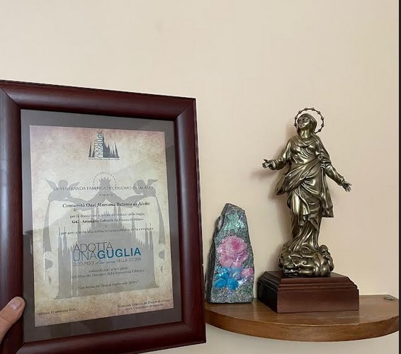 il Presidente Regionale della Federlazio, Ing. Silvio Rossignoli, ha donato all’Oasi Mariana Betania di Alvito, per il tramite di Don Alberto Mariani, una speciale guglia del Duomo di Milano (G 42 Arcangelo Gabriele) supportando anche l’iniziativa a sostegno dei restauri del monumento.