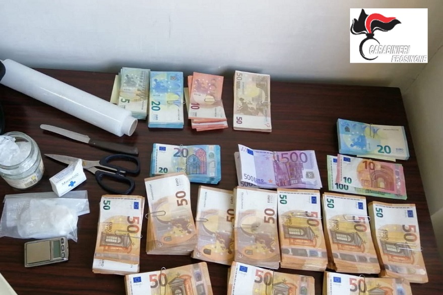 Fermati dai carabinieri, l’acquirente è stato trovato in possesso di un involucro con 0,60 grammi di cocaina mentre all’arrestato sono stati sequestrati 230 euro in contanti. La perquisizione è stata estesa all’abitazione del 59enne e in un altro appartamento di Frosinone: qui i militari hanno trovato 29.500 euro suddivisi in banconote di vario taglio e ritenuti il profitto dell’attività illecita nonché materiale idoneo per il confezionamento delle dosi.