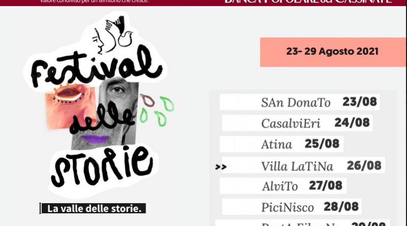 San Donato, Casalvieri, Atina, Villa Latina, Alvito, Picinisco, Posta Fibreno. Sono queste le tappe dell’undicesima edizione del Festival delle Storie, che trasforma la Valle di Comino nella “valle delle storie”, la valle delle belle storie, in cui l’arte di raccontare, raccontarsi, condividere storie e tradizioni, diventa protagonista
