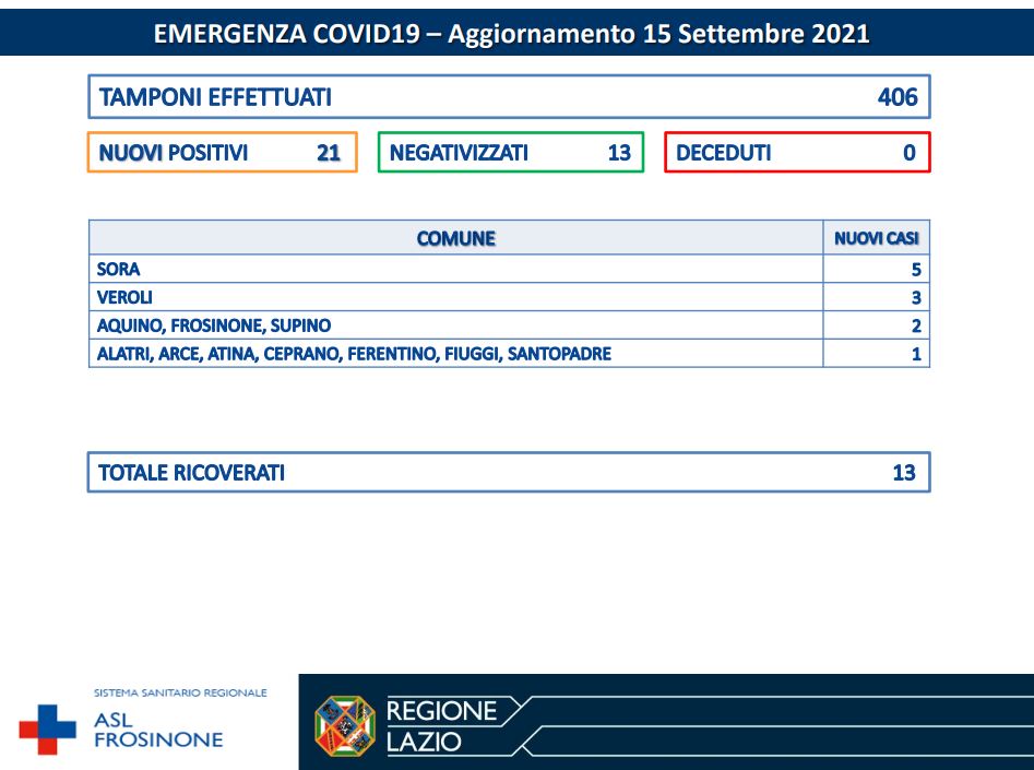 “Abbiamo registrato 21 nuovi casi di positivi al SARS-CoV-2. I negativizzati sono 13. Non abbiamo registrato decessi” Evidenzia la Asl