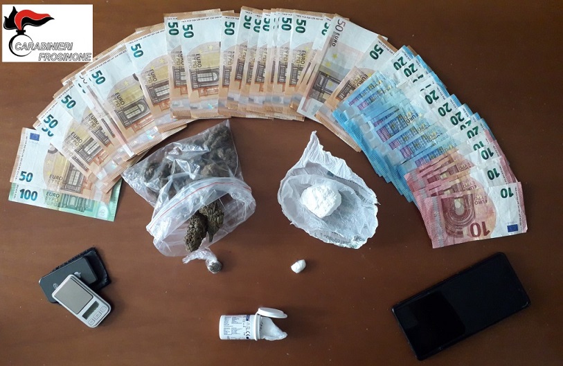 Nell’abitacolo i militari hanno notato dei residui di sostanze stupefacenti. La successiva perquisizione veicolare ha dato negativo ma, a causa dell’atteggiamento nervoso dell’uomo, i militari hanno deciso di estendere la perquisizione anche alla sua abitazione, nel corso della quale sono stati trovati in una cassaforte murata e occultata, 30 grammi di cocaina, 35 grammi di marijuana, un bilancino di precisione unito e materiale vario utilizzato per confezionare e sigillare le singole dosi in cui veniva ripartito lo stupefacente, oltre a banconote di vario taglio per un importo complessivo di 2.800 euro, provento dell’attività di spaccio.