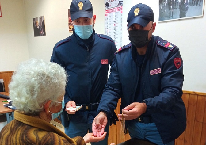 Proprio in autostrada gli agenti sono riusciti a rintracciare la coppia di malviventi, che a seguito di una serie di approfonditi accertamenti sono stati identificati come gli autori della truffa perpetrata poco prima ai danni dell’anziana signora. L’uomo, un trentasettenne residente a Napoli, messo alle strette, ha confessato di essere l’autore della truffa appena consumata insieme a sua cugina, una ventottenne residente pure lei nel capoluogo partenopeo, permettendo di recuperare anche il denaro, i gioielli e le fedi che la malfattrice aveva nascosto nelle scarpe.