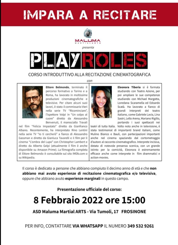 Anche Frosinone avrà la sua scuola di recitazione, grazie all’associazione Maluma Martial ART e agli attori Ettore Belmondo ed Eleonora Tiberia.