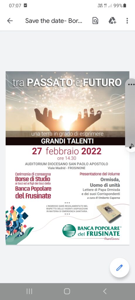 “Ormisda, Uomo di unità”, a cura del professor Umberto Caperna e con le lettere del