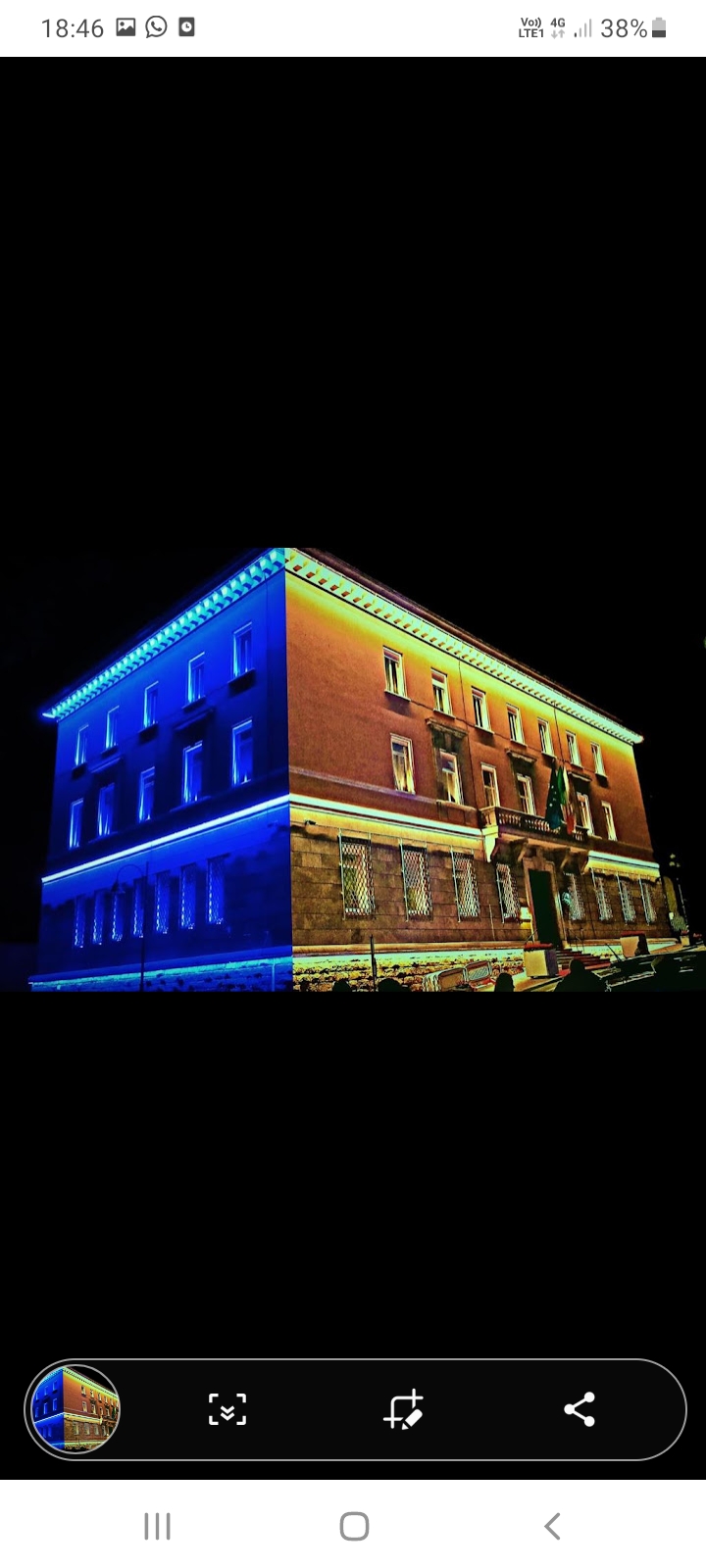 Frosinone, il palazzo comunale blu e giallo per l’Ucraina