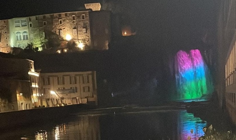 Isola del Liri: cascata colorata contro le malattie rare