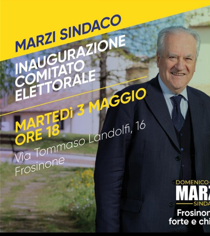 “Si parte ufficialmente! Martedì 3 maggio, alle ore 18.00 in via Tommaso Landolfi 16, inauguriamo il nostro Comitato elettorale”. Così Domenico Marzi, candidato sindaco del Pd. “Un luogo di incontro e di confronto tra i cittadini e i candidati, per raccogliere idee e proposte con l’obiettivo di rilanciare questa Città. Anche da qui getteremo le basi per la Frosinone del futuro, affinché torni a correre e ad essere protagonista”.