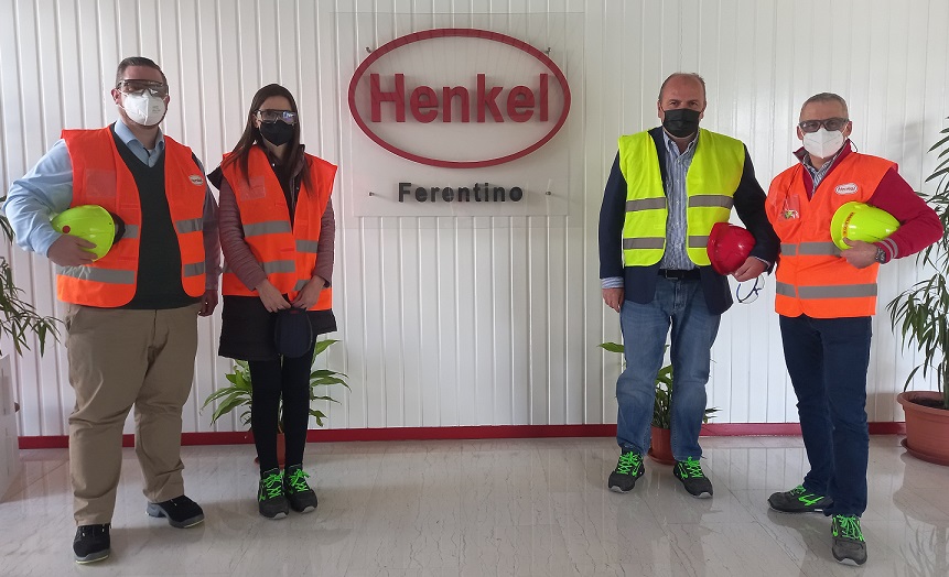 Il presidente del Consorzio Industriale del Lazio, Francesco De Angelis ha visitato nei giorni scorsi lo stabilimento Henkel di Ferentino, leader nella produzione di detergenti, prodotti per la cura della persona e adesivi. Ad accoglierlo il direttore di stabilimento Goffredo Angelucci; Felix Sobotka, responsabile SHE globale ed Erika Toth, a partire da giugno prossima direttrice di stabilimento.